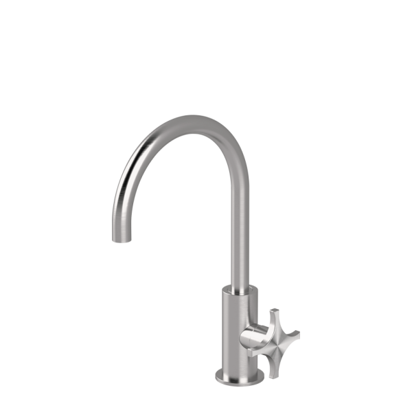 Deck-mounted tap with ceramic valve and big glass handle. IMPORTANT: always indicate the finishing of the glass handle. Ice handle (TR), Amber handle (TO). E.g.: DOR92 S TR