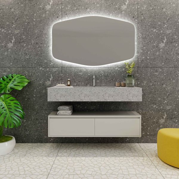 Έπιπλο μπάνιου LAILA 75 / Hi-Box, Pearl / Rovere, 74 x 43 x h.77,5 εκ., με οπή δεξιά (για μπαταρία πάγκου) χωρίς νιπτήρα, SCARABEO Ιταλίας